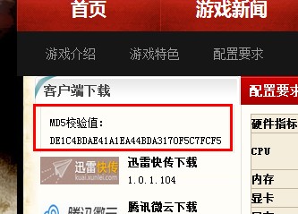 A: 此问题一般由于您下载的安装文件损坏导致,需要与下载页面提供的校验值进行比较以确定,步骤如下: 1、请点击网站上方导航的“游戏下载”,在页面下方找到“其他下载”中的“客户端MD5校验工具”,将其下载到您的电脑中。如图所示:  2、打开这个计算工具,并将你刚刚下载的游戏安装文件拖动到它的窗口上,可以看到“哈希值”后显示“正在计算哈希值,请稍候。。。”字样,此时请耐心等待,最后取得文件的MD5值计算结果。如图所示:  3、将这个值与“客户端下载”区域中提供的“MD5校验值”比较,如下图所示。如果不相同,便可以说明您下载的安装文件有损坏,只能重新下载。  |
