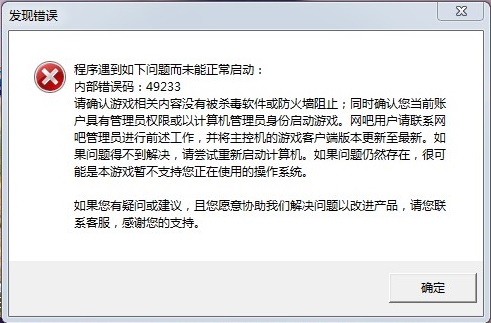 A:这是网络环境所导致的偶发性问题,请检查您的网络连接是否正常。 Q:游戏启动器(更新器)有崩溃、界面不刷新、无限更新等问题怎么办? A:请您点击下载最新的游戏启动器,手动解压覆盖到您的游戏根目录相同文件后再行尝试。 Q:游戏启动报49233错误怎么办?