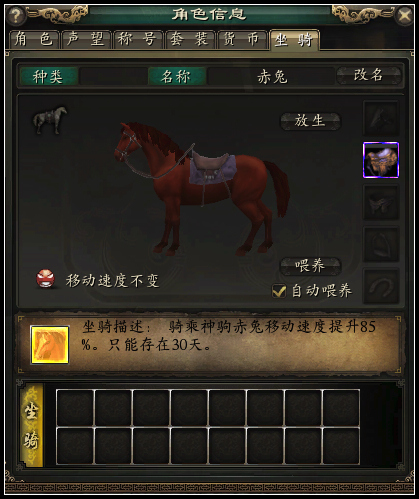 坐骑可以装备饰品防具,从而可间接提升角色的属性,使主人更加强大。