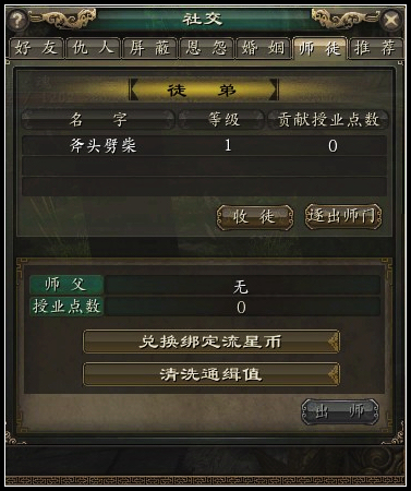 徒弟角色等级必须达到25,可自主选择退出师门,退出时,扣除该徒弟贡献给师傅的授业点数。